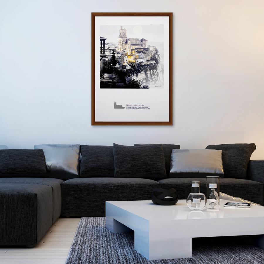 - 美術品・アンティーク・コレクション > 絵画 > 笹倉鉄平「窓辺」フレーム付き プリント ポスター インテリア 笹倉鉄平 笹倉鉄平 絵画 額入りポスター「Arcos de la Frontera」フレーム付き