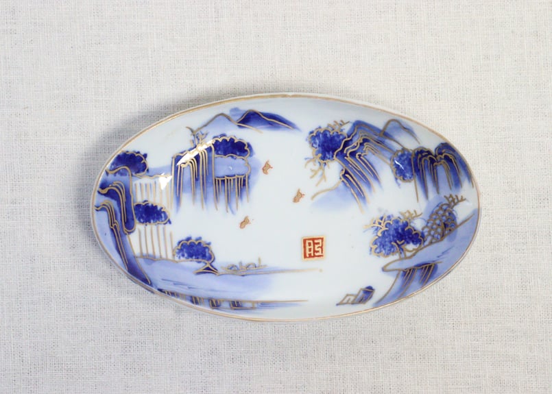 - 美術品・アンティーク・コレクション > 工芸品 > 九谷焼六角皿 明治期 色絵 染付山水図 手描き陶芸品 旧家蔵出 アンティーク 九谷焼六角皿 明治期 色絵 染付山水図 手描き陶芸品 旧家蔵出