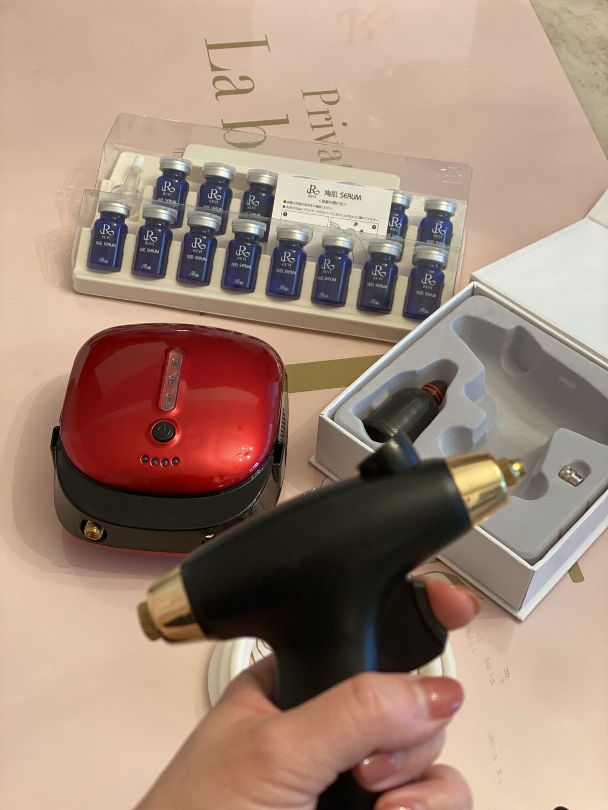 | 商品の特徴 | スプレーガンセット(延髄30本付き) | REVI SHOP。最先端美容】延髄スプレーガンセット (陶肌セラム30本つき) | REVI。新品未使用/REVI延髄スプレーガン本体 スプレーガンセット(延髄30本。ヒト神経細胞順化培養液(延髄由来)の美容液をスプレーガンで噴射することにより、より細かい粒子でしっかり奥まで浸透させることができます。新品未使用/REVI延髄スプレーガン本体 スプレーガンセット(延髄30本。 商品名:REVI スプレーガン フェイスケアシステム | ||