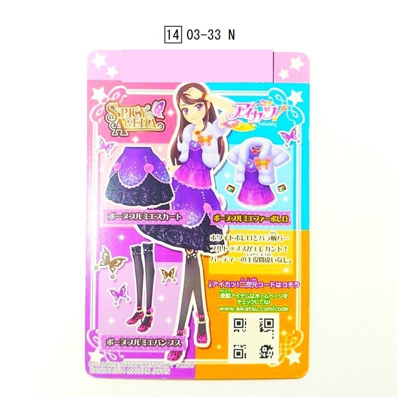 - トレーディングカード > ゲームセンター・ゲームカード > 【バラ売り可】アイカツ!カード 2014 1〜3弾 レア以上 アイカツ!カード 2014シリーズ第3弾 スパイシーアゲハ 3枚セット