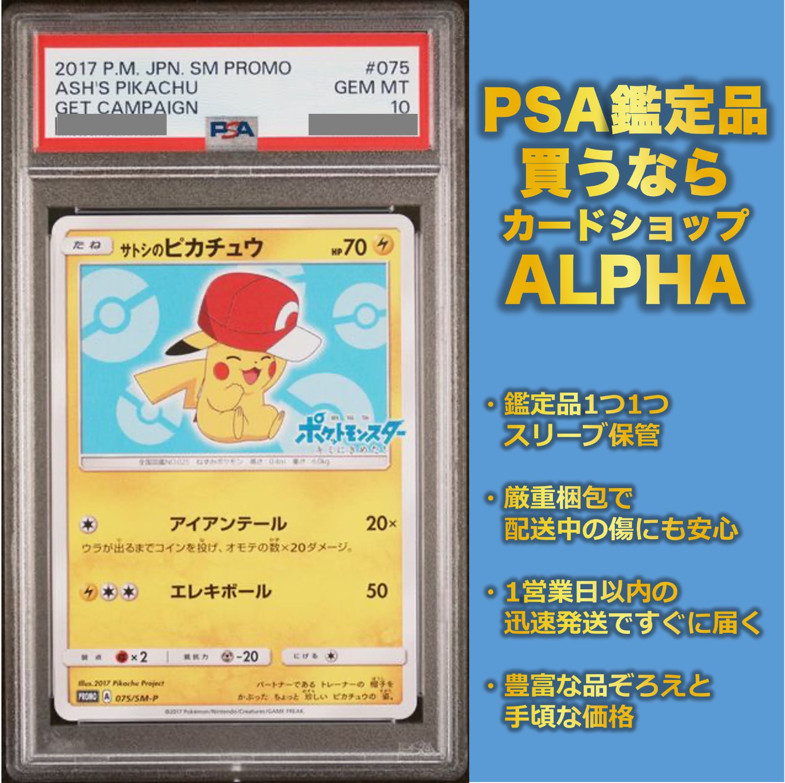 - トレーディングカード > ポケモンカードゲーム > 【PSA10】サトシのピカチュウ PROMO 076/SM-P psa10 サトシのピカチュウ PROMO プロモカード 076/SM-P PSA10】サトシ