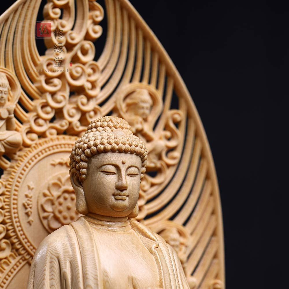 【修縁堂】木彫仏像 阿弥陀如来立像 阿弥陀仏 彫刻 一刀彫 天然木檜材 修縁堂】木彫り 仏像 阿弥陀如来立像 阿弥陀仏 精密彫刻 一刀彫 天然木