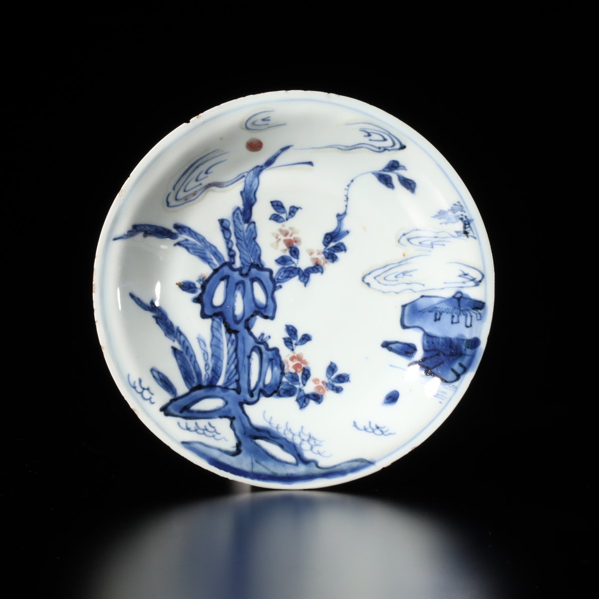 - 美術品・アンティーク・コレクション > 工芸品 > 染付皿 中皿 3枚 鳥文 花文 岩文 花弁縁 明治 大正 五寸皿 美品 染付皿 中皿 3枚 鳥文 花文 岩文 花弁縁 明治 大正 五寸皿 美品