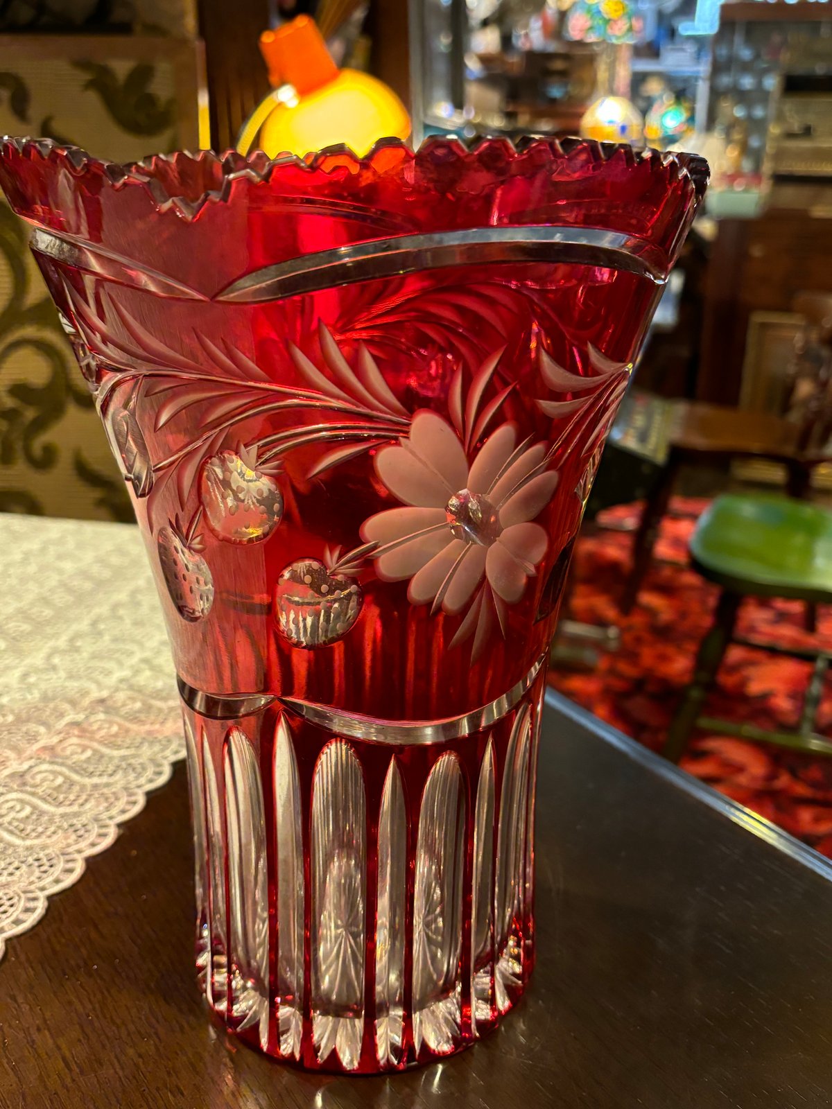 | メーカー | 赤いオープンワークガラス花瓶 カットガラス |