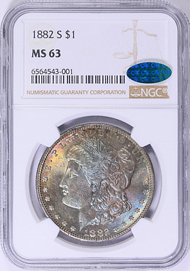 NGC MS63 MORGAN DOLLAR モルガンダラー 1882年 鑑定品 1882-S Morgan Silver Dollar NGC MS-63 (CAC Green) (Toned) (Item