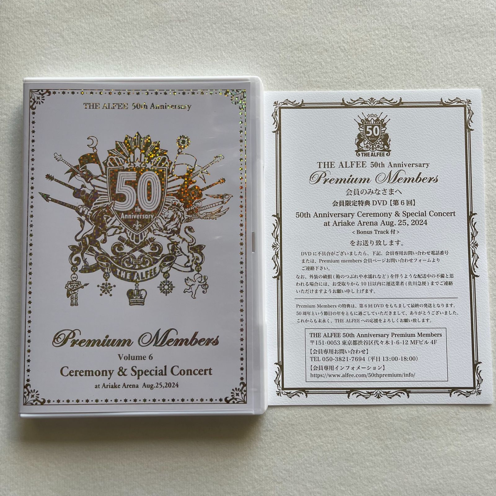 | 商品の特徴 | THE ALFEE 50周年プレミアムメンバーDVD 他 【公式通販】。THE ALFEE 50周年記念プレミアムメンバーズ DVD THE ALFEE 50周年。THE ALFEE 50th プレミアムメンバーズDVD 桜井賢。THE ALFEE 50th Premium Members DVDセット全6巻。アルフィー◯50周年〜プレミアムメンバー◯*DVD #1〜5(数回再生)*アルフィーアニバーサリー新聞+コースター(一読)*スポニチ新聞2種 アルフィー記事*50年目の夏祭り〜翼〜穴、キズあり* Takamiy's Guiter Heaven 2025 × ESP 50th Anniversary ポストカード 凹みあり*コンサートのフライヤー数種類ご理解頂ける方のみ神経質な方はご購入をお控えください宅急便発送予定です | ||
