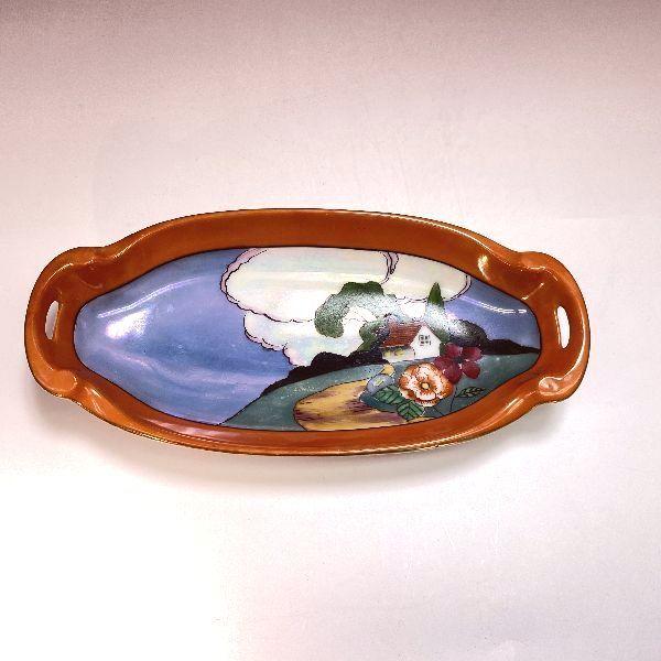 - 美術品・アンティーク・コレクション > 工芸品 > オールドノリタケ デコレディ ラスター彩 小物入れ 灰皿 アールデコ 婦人 ノリタケ オールドノリタケ ラスター彩 風景紋 長皿 アールデコ