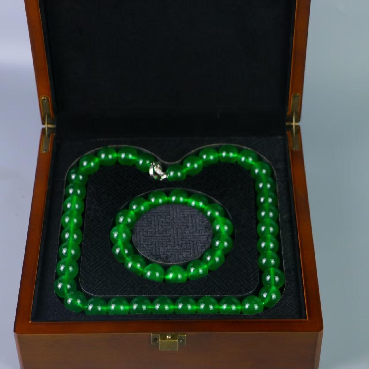 委託品 中国清時代 翡翠 腕輪 貴重品※激安骨董品 AK411D2-3 清代 宮廷御蔵 髙氷翡翠彫 帝王緑 腕輪 ネックレス アクセサリ 箱付