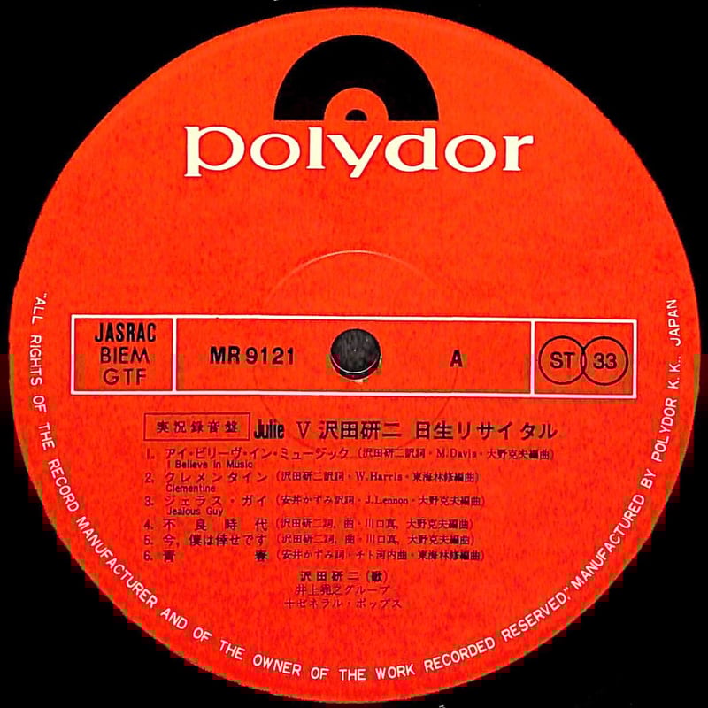 - タレントグッズ > ミュージシャン > 沢田研二 GERATEST HITS UK盤LP 沢田研二 / Julie Ⅴ 日生リサイタル [※国内盤,品番:MR 9121/2,2枚組](