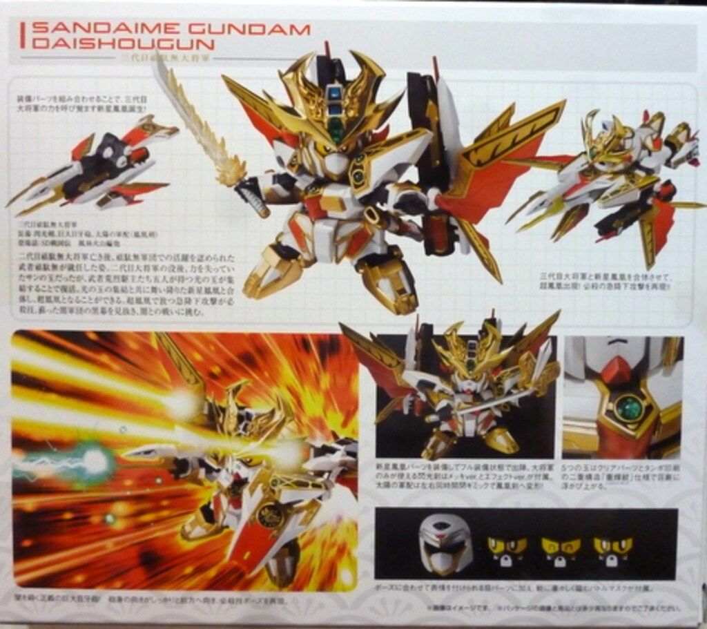 | 商品の特徴 | SDX 三代目頑駄無大将軍 SD戦国伝 風林火山編 交換パーツ付き SDX。SDX 三代目頑駄無大将軍修正パーツ付き ラスト1個 SDX 三代目頑駄無大。BB戦士】 No.67 『三代目頑駄無大将軍』<SD戦国伝> - ゆめろぐ。SDX 三代目頑駄無大将軍 SD戦国伝 風林火山編 交換パーツ付き。SDX 三代目頑駄無大将軍SD戦国伝 風林火山編開封品交換パーツ付きカード以外の付属品揃っています箱傷みあり本体も黄ばみや傷あるので、完品をお求めの方はご遠慮ください交換パーツ用の輸送箱に文字書かれてます、ご了承くださいプチプチで包みダンボール発送します即購入可◎ | ||