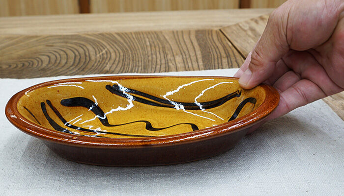 - 美術品・アンティーク・コレクション > 工芸品 > 12月16日まで23000円→20000円 直径 44cm ! 大皿布志名焼 ① 和食器 布志名焼 湯町窯 オーバル 皿 21cm 浪紋濃茶 黄釉 | うつわの店