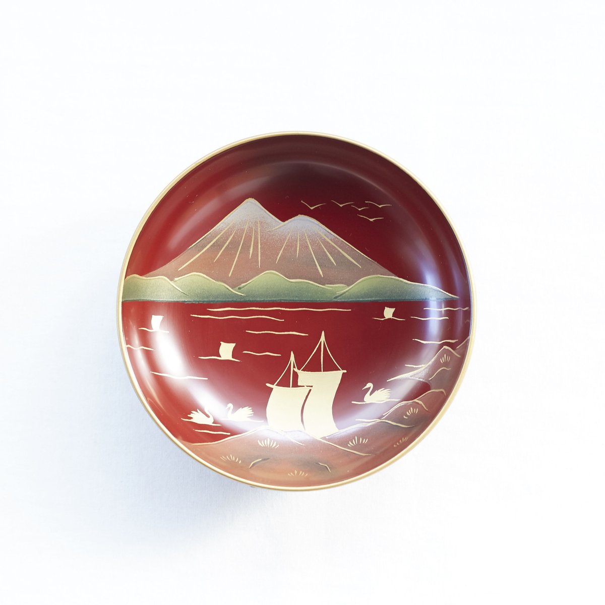 | メーカー | 明治、大正期 会津塗 鉄錆塗 蒔絵 富士山 木製 蓋付き お椀 梅鶯 内朱 5客 |